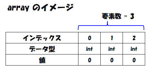 配列の変数の中に、変数を宣言することを「配列の初期化」といいます。