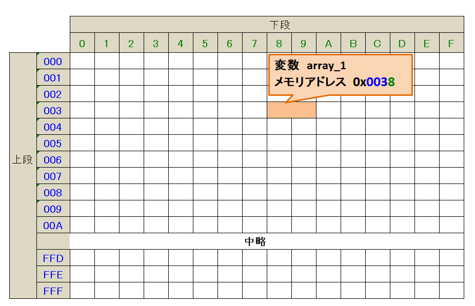 変数 array_1 と メモリのメモリアドレス 0x0038が紐づけられました。