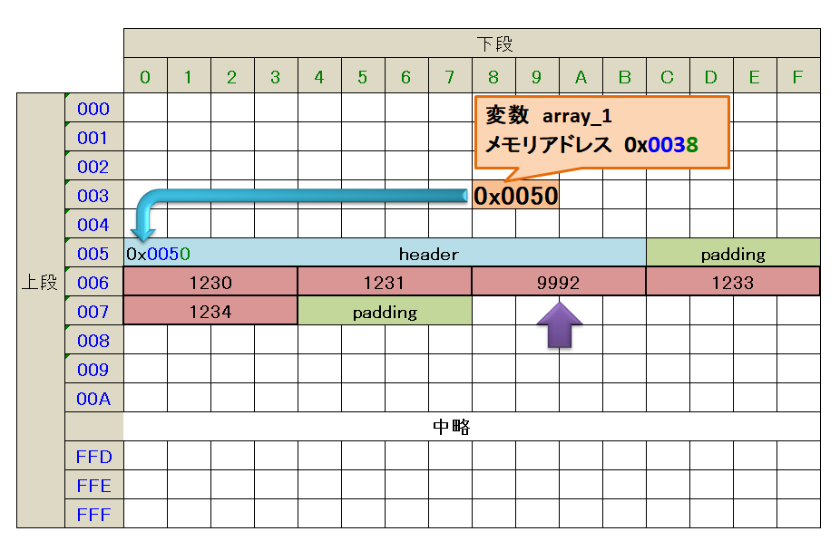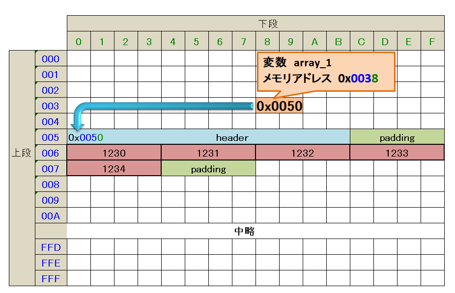 メモリアドレスのサイズが 2byteの環境の場合は