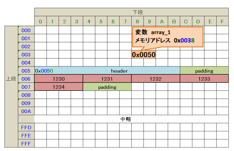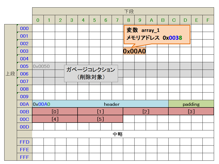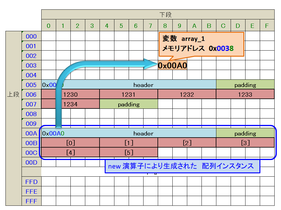 配列インスタンスのメモリアドレス 0x00A0が紐づけられました。