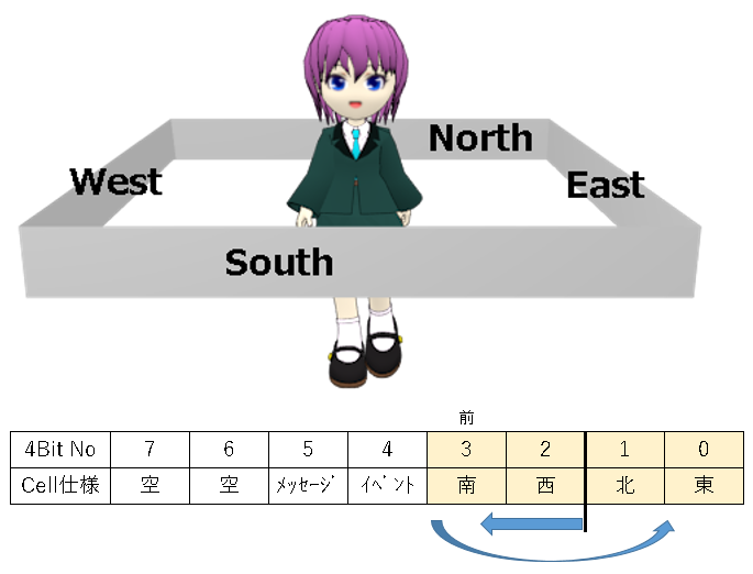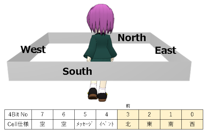 これ一つで東西南北の壁の種類と発生するイベントの種類を表します。