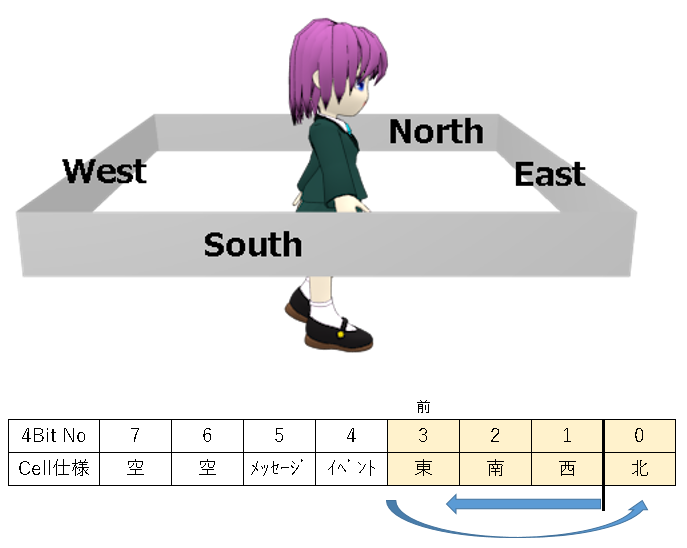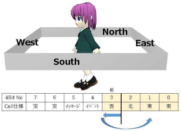 これ一つで東西南北の壁の種類と発生するイベントの種類を表します。